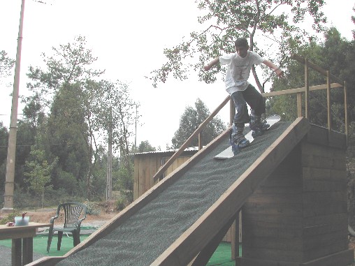 A Norte Snowboard tem uma rampa de 2 metros de altura numa estrutura fixa em madeira. A pedido dos clientes vamos colocar outra rampa de aceleracao na pista. Sera uma estrutura de andaimes incialmente com 4 metros de altura que gradualmente ira aumentar ate aos 8 metros.